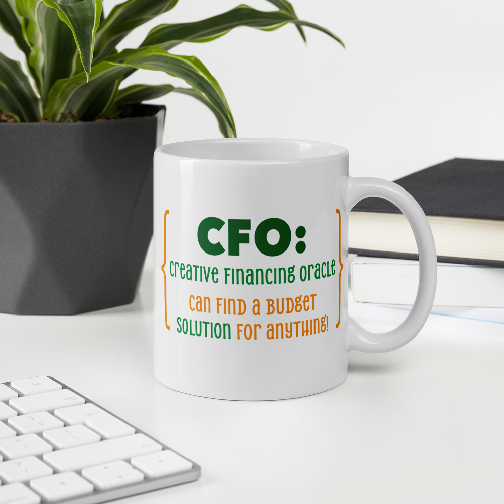 Ready to add a little flair to your financial foresight? Explore the CFO Mug Collection today and find the perfect mug that speaks to your inner financial guru! Our mugs bring a pop of color, a catchy phrase and are the ideal gifts for colleagues, mentors, or as a well-deserved treat for yourself. Photos show both the front and the back of each mug!